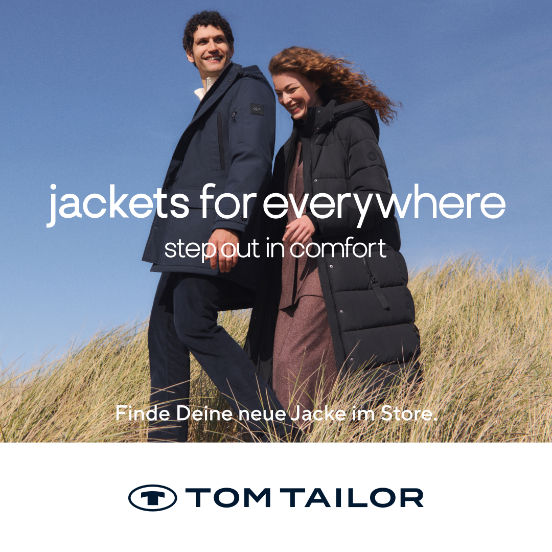 Ab Montag, den 20.10.2025 können Sie in den Tom Tailor Stores in der ShoppingCity Seiersberg die aktuellen Jacken-Modelle entdecken.
