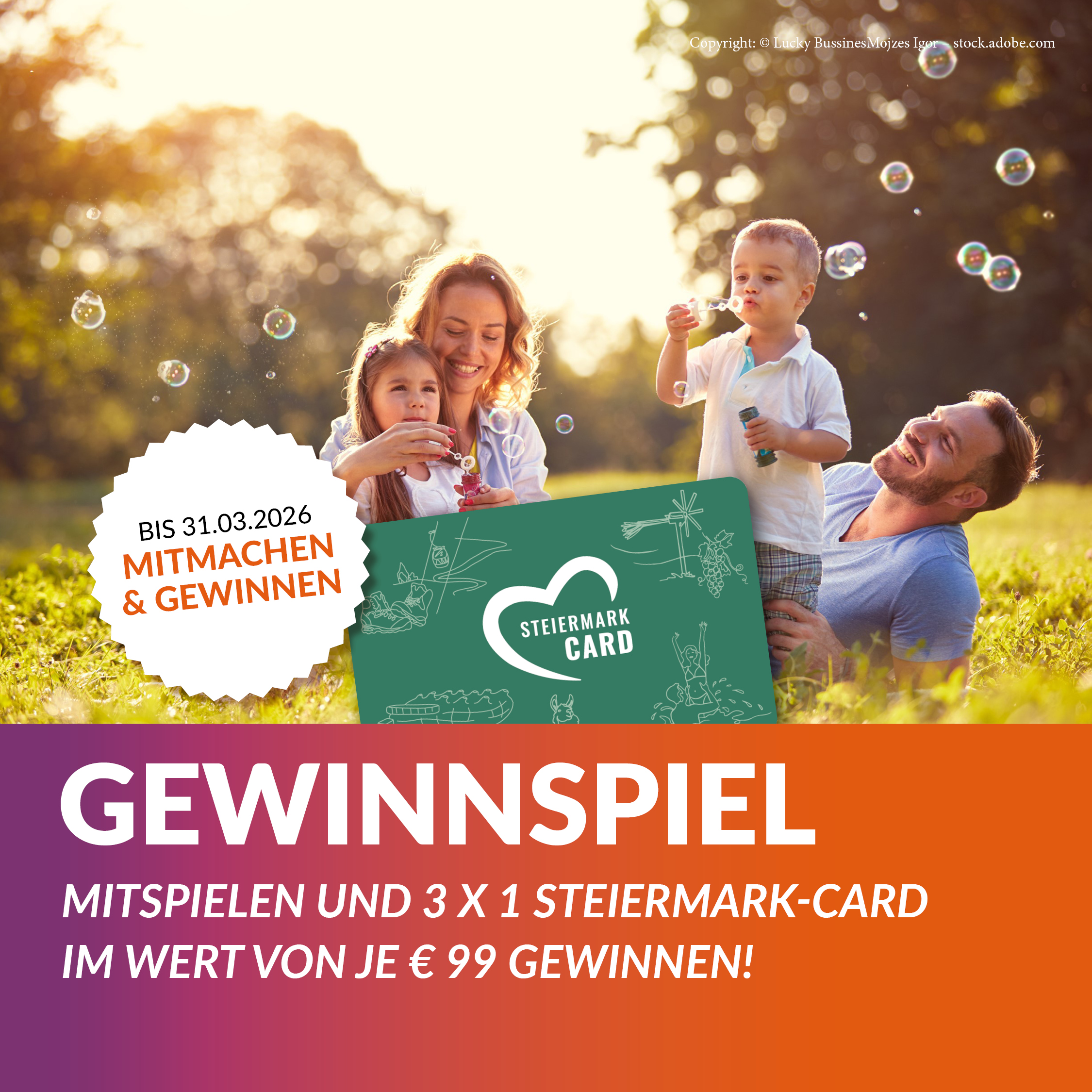 Gewinnen Sie 1 von 3 Steiermark-Cards für Ihre „Wir-Zeit“ 2026!