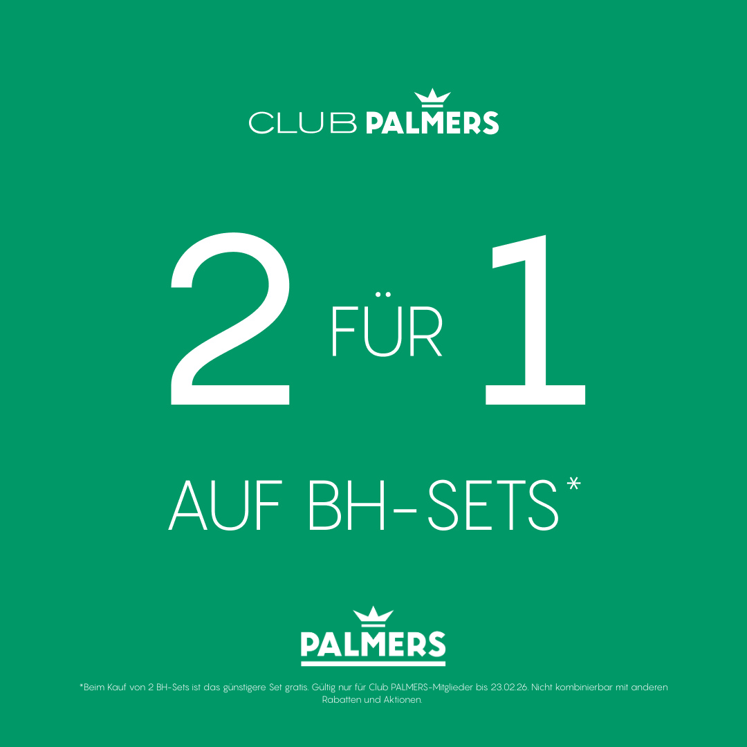 Gönnen Sie sich doppelte Freude mit der exklusiven Club-Aktion bei Palmers in der ShoppingCity Seiersberg. Als Club PALMERS-Mitglied profitieren Sie ab sofort von einem besonderen Angebot: Beim Kauf von zwei BH-Sets erhalten Sie das günstigere Set vollkommen gratis geschenkt.