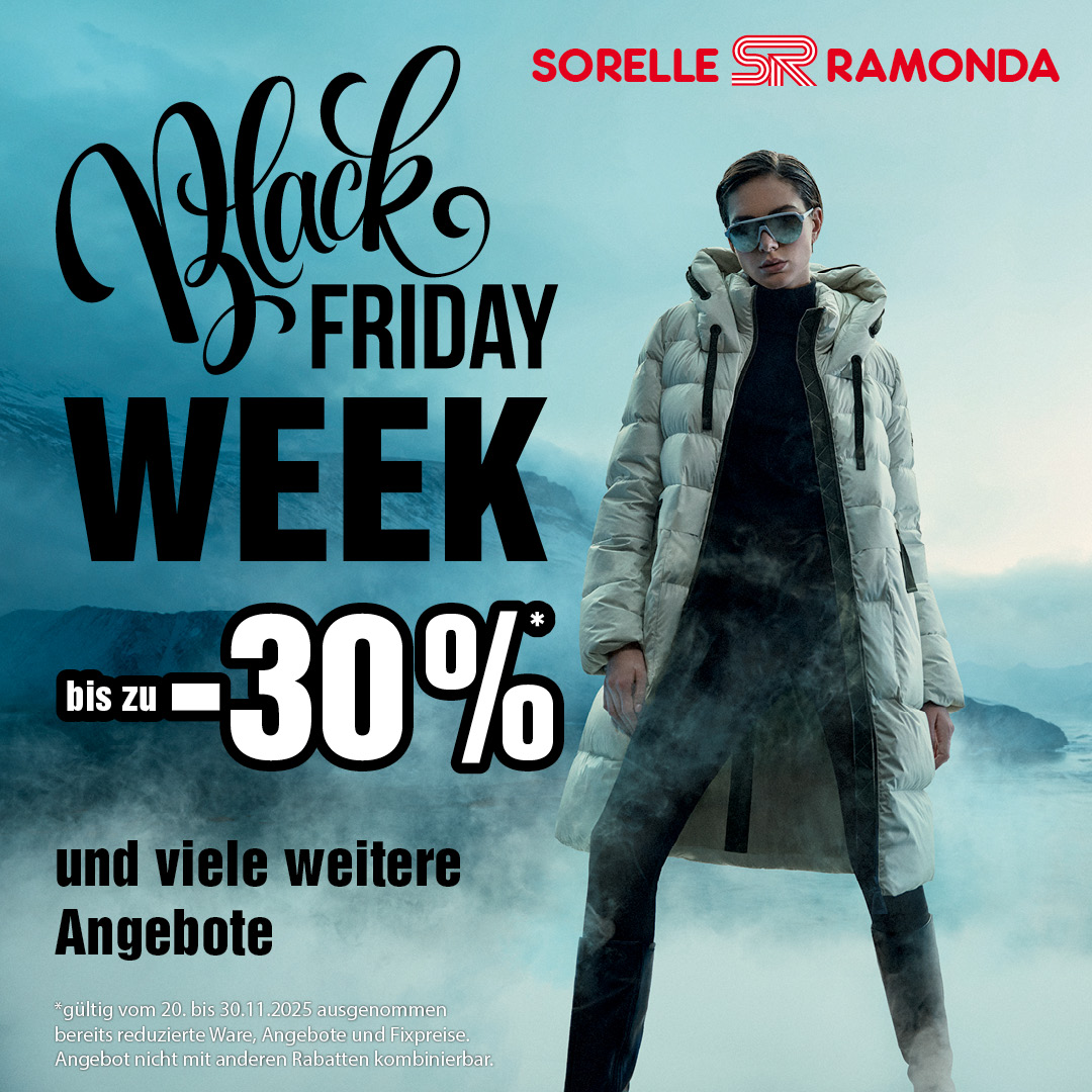 Die Black Friday Week bei Sorelle Ramonda in der ShoppingCity Seiersberg läuft vom 20.11. bis 30.11.2025.