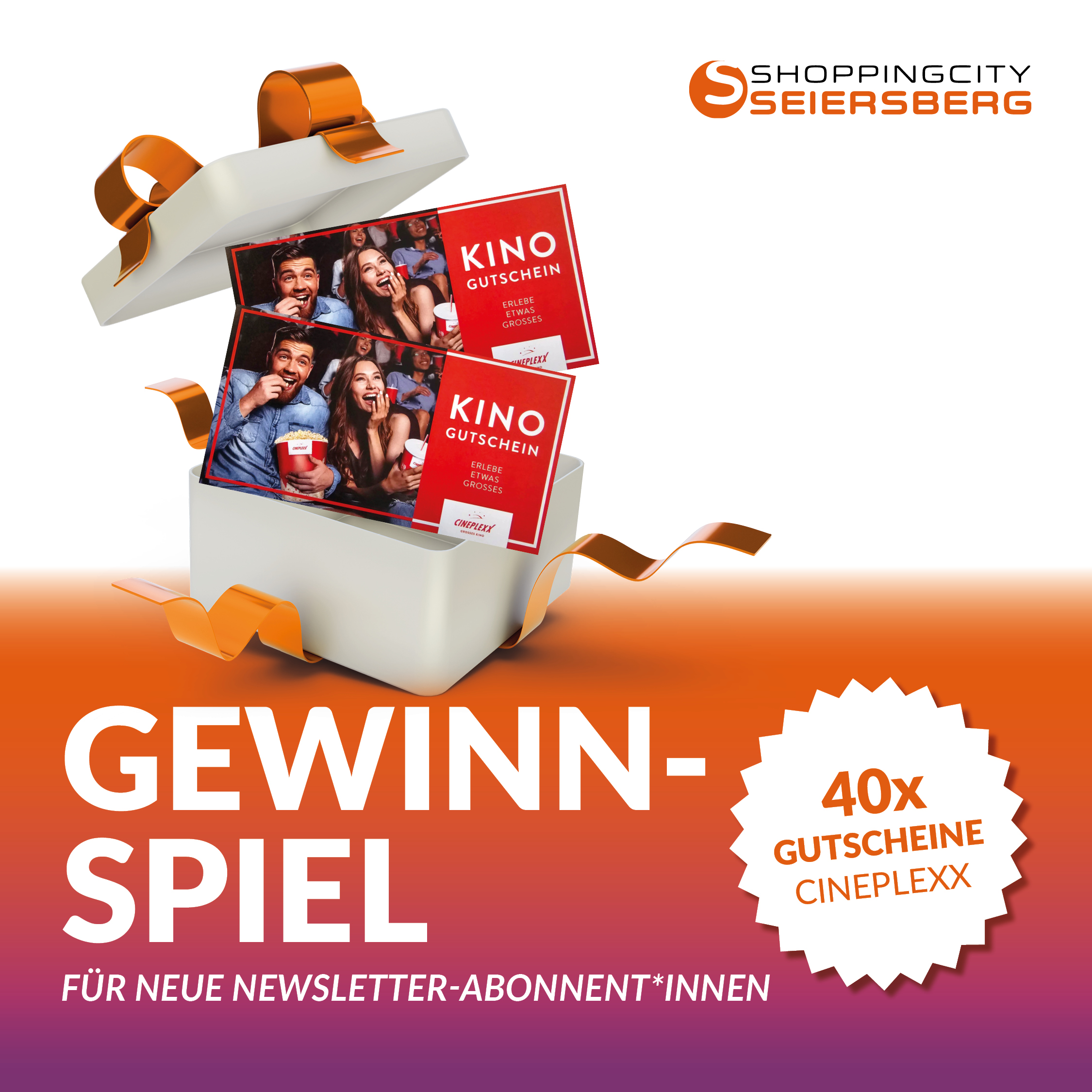 Wir verlosen unter allen neuen Abonnent*innen 20×2 Cineplexx Gutscheine (insgesamt 40 Gutscheine) für das große Kinoerlebnis. Verpassen Sie keine News und sichern Sie sich Ihre Chance auf den Kinogenuss!