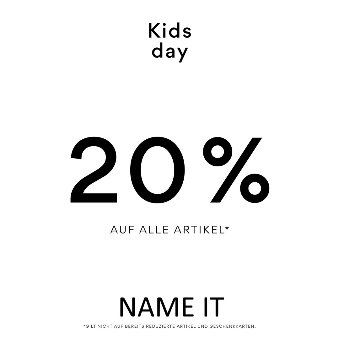 Besuchen Sie uns bei NAME IT und lassen Sie sich von den aktuellen Kollektionen inspirieren. Bitte beachten Sie, dass die Aktion nicht auf bereits reduzierte Artikel und Geschenkkarten gültig ist.