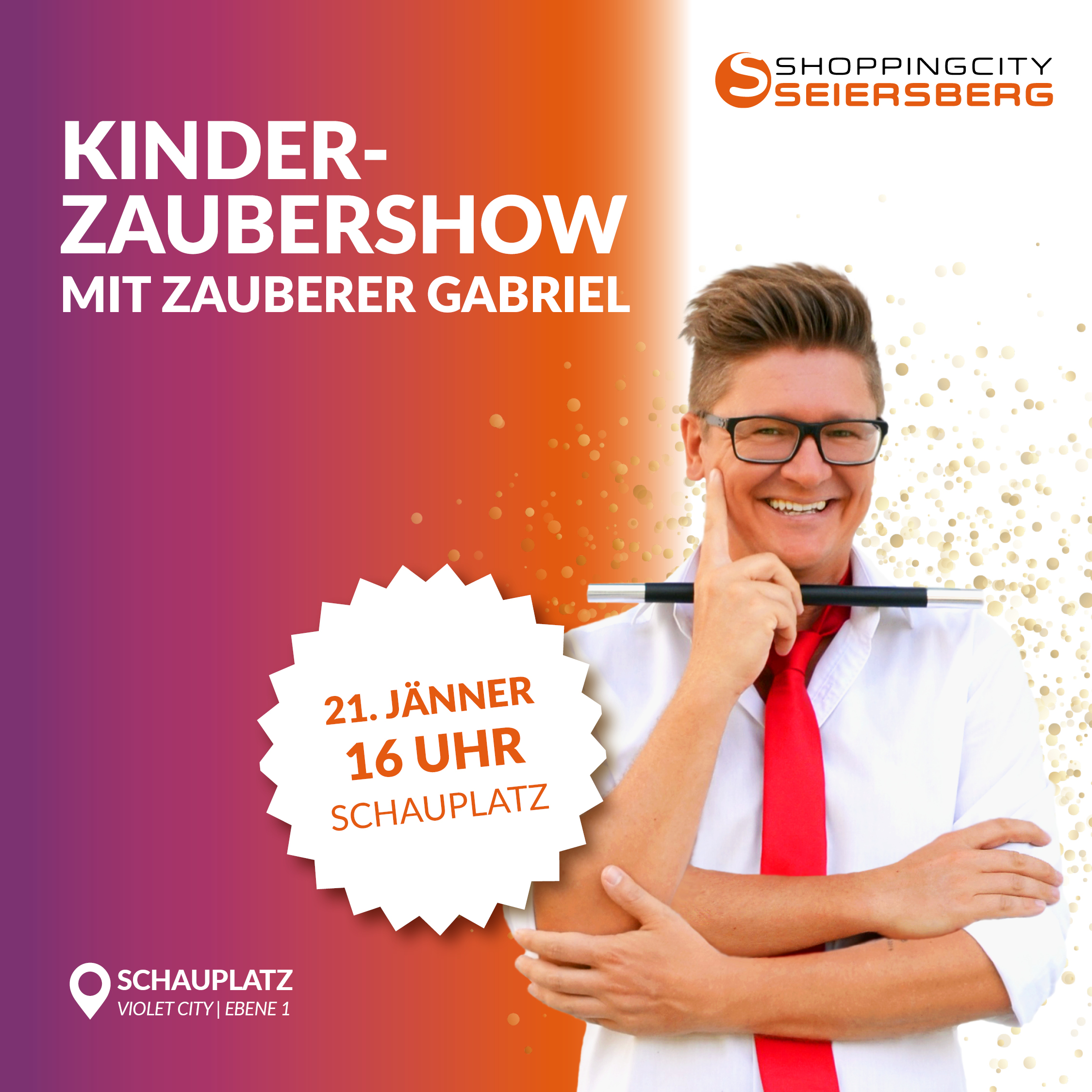 Abrakadabra! Auch im neuen Jahr wird es in der Shoppingcity Seiersberg wieder magisch. Wir freuen uns riesig, ankündigen zu dürfen, dass Zauberer Gabriel auch 2026 wieder für staunende Kinderaugen und jede Menge Rätselspaß sorgen wird.
