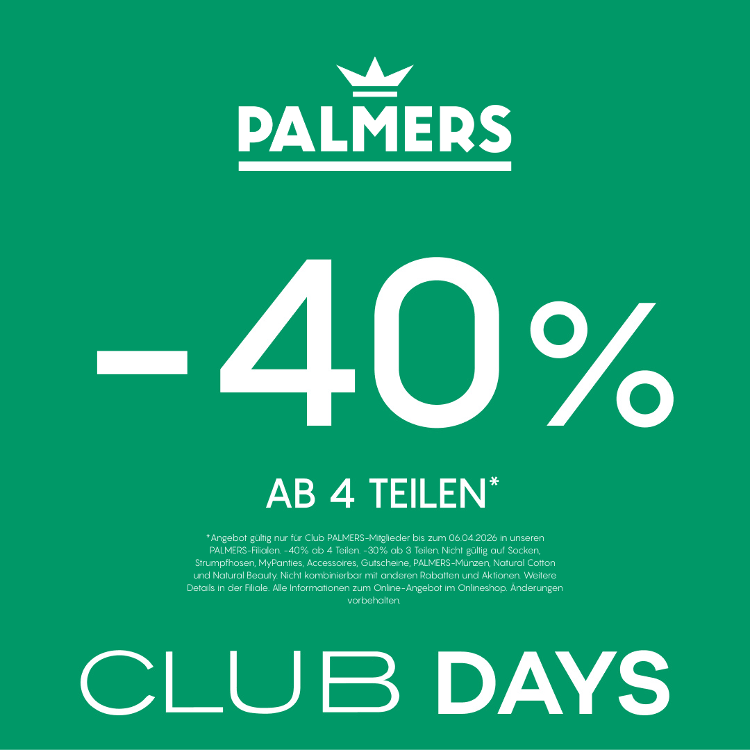 Holen Sie sich jetzt Ihre Lingerie-Favoriten mit exklusiven Preisvorteilen in der ShoppingCity Seiersberg! Pünktlich zu den Palmers Club Days profitieren alle Club-Mitglieder von einer attraktiven Staffelaktion auf die aktuelle Kollektion.