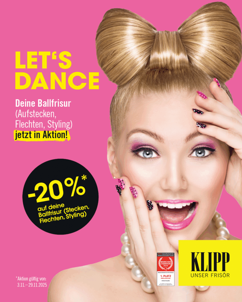 Beste Beratung und die neuesten Frisurentrends zum fairen Preis! Bei KLIPP werden Sie von top ausgebildeten Friseurinnen in angenehmer Atmosphäre verwöhnt Es erwarten Sie typgerechte Beratung, perfekte Haarschnitte und trendige Frisurenstylings! Profitieren Sie von zahlreichen Stammkundenvorteilen für die ganze Familie in unseren monatlich wechselnden Aktionen. Kommen Sie während der Öffnungszeiten von Montag bis Samstag spontan vorbei – ohne Voranmeldung!